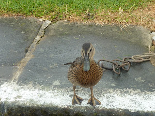 We finally left Skipton this morning, and despite what the weather forecast said about a sunny morning, it was raining. It kept on raining as we negotiated several wet swing bridges, with just the occasional sunny interlude. We met this duck in one of the Gargrave flight of locks - she was desperate to jump on the boat and join me, but settled for taking a couple of slices worth of bread from my hand. The Paparazzi are everywhere!